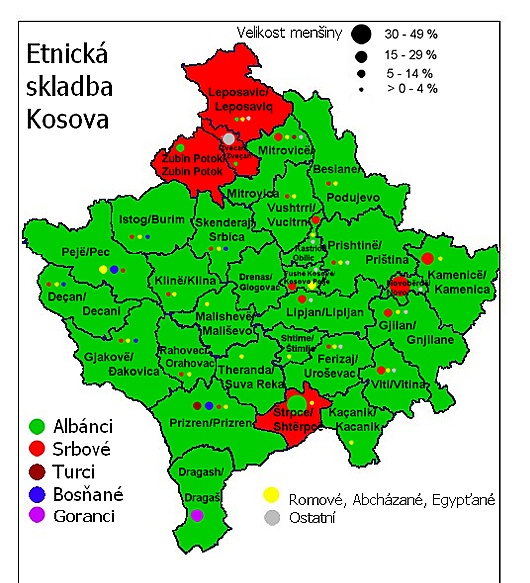 V roce 2007 činil podíl Albánců v Kosovu podle Statistického úřadu Kosova 92 %, zatímco Srbů bylo 5,3 %, přičemž Srbové byly soustředěni zejména na severu země.[21] Dalšími etniky jsou zejména Goranci a Černohorci.